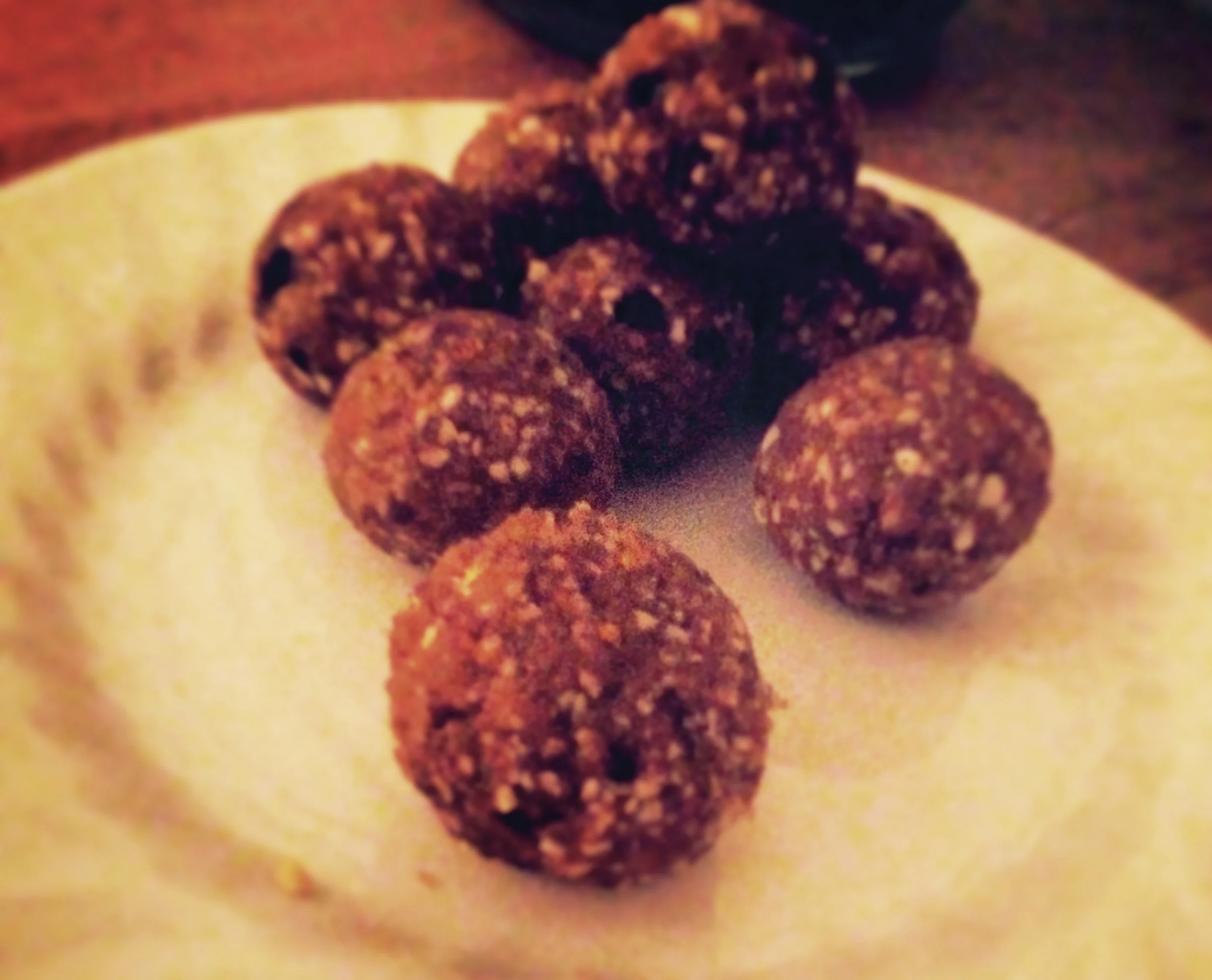 Add all the other ingredients to the food processor and mix until the mixture starts to clump together. It should be stodgy and easy to roll into a ball.